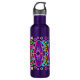 El chica se llama Raya en la botella de agua rodeada de corazones y estrellas morados y rosas.
