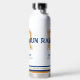 Nombre sencillo que significa letra texto estilo deportivo botella para el nombre Rashaun que significa luz de día. Un guerrero tenaz brillante. Hay otros estilos de significados de nombres disponibles o personalizados este elemento con su propio nombre y lo que su nombre significa para usted y su cántico o equipo o nombre repetido. Ideal para los aficionados o jugadores que tengan el amarillo dorado, azul marino oscuro y blanco como colores de equipo. Diseñado por www.mylittleeden.com y namesense en Zazzle.