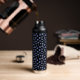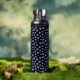 Botella de agua de invierno personalizada y moderna y ligera La botella de agua de cobre aislada por vacío Thor, con un patrón de arándano en el fondo negro. Personaliza fácilmente el texto. - Kate Eden Art