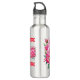 Las rosas rosadas y rojas con un nombre monogramado en un fondo burdeos son para todos los que aman las flores. Botella de agua de acero inoxidable.