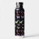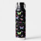Botella De Agua Nombre personal Elegante Morado Brillante Mariposa