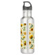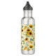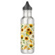 Nombre de personalizable y botella de agua monograma con una impresión de girasoles de jardín pintados, panal de miel y abejas con miel, colores amarillo y verde.