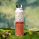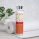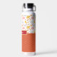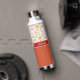 Esta botella de agua presenta un patrón de olas oceánicas asiáticas de color rojo y dorado en el fondo, con un patrón abstracto en la parte superior de las olas del océano, nubes, cintas y puntos de polka en rojo, oro, gris y blanco. Estas botellas de agua bien diseñadas tienen doble pared de construcción para mantener su agua fría y agradable durante 48 horas o para mantener una bebida caliente durante 12 horas.