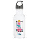 Una botella de agua personalizada con un lindo oso acuarela llevando una corona dorada. Este animal caprichoso está pintado de rosa y verde y decorado con corazones a través de su pecho.