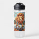 Este diseño creativo presenta un león macho hecho enteramente de hojas de otoño parado en un lago con una hermosa reflexión.