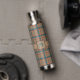 Una suave base de madera cruda está atravesada por bandas de color rojo, naranja de otoño brillante y verde jungla en esta agradable manta que combina colores de moda en un ambiente acogedor perfecto para la caída. Personalizar el monograma con su inicial para crear una botella de agua que sea única para su uso.