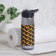 Tanto si hace ejercicio en la sala de fitness como si hace footing en el parque, puedes quedarte acallado en cualquier parte con esta botella de agua clara y plástica que muestra la foto de una flor naranja de la planta tropical de pájaros del paraíso impresa en un patrón repetido sobre un fondo negro. También se le conoce como flor de grúa. ¡Un diseño impresionante y florido! Seleccione su tamaño y color de la botella de agua.