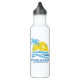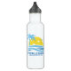 Una botella de agua deportiva con un divertido diseño de pickleball de un "sol de pickleball" enmarcado por una palmera tropical y olas del océano. Agregue dos líneas de texto personalizado para personalizar. Es un gran regalo para cualquier jugador de pickleball, organizador de club o equipo, compañero de equipo o instructor.