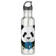 Retrato de un lindo oso Panda con una flor de loto azul en un fondo verde