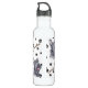 Esta botella de agua muestra el retrato de un artista de un hermoso perro negro de Scottish Terrier. La imagen se repite alrededor del perímetro de la botella y se coloca sobre un fondo salpicado de huellas de pata negra. Su nombre u otro texto en castaño también se repite alrededor del perímetro.