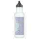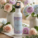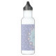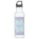 Custom daisy water bottle in pastel blue, yellow and pink, on a dotted background.