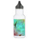 Las burbujas pasteles de agua, turquesa, azul, rosa y morada son el telón de fondo para estas plumas de pavo real espesas