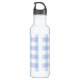 Patrón clásico de gingham púrpura pastel en botella de agua personalizada.