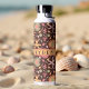Una magnífica botella de agua con un patrón a mano de flores y de pez estrella diseminados por todo el mundo y fondo marrón chocolate. El espacio del nombre es totalmente personalizable, lo que lo convierte en un lugar único, ideal para regalarse o para tratarse a uno mismo con algo especial. Añade tu nombre, elige tu fuente favorita y destaca de la multitud.