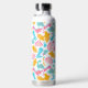 Botella De Agua Patrón de dinosaurios divertidos rosa y Verde azul