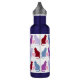 Patrón de silueta de gato lindo en morado y azul con corazones rosados en medio. Manta de forro polar. Botella de agua