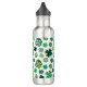 En esta botella de agua, se colocan sobre un fondo blanco varias rocas de color verde en diferentes tonalidades y tamaños. ¡Muéstrale tu orgullo irlandés a donde vayas!