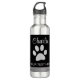 Botella De Agua Paw de perro plateado sobre fondo negro