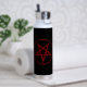 Pentagrama rojo, invertido, texturado en círculo, sobre fondo negro. Símbolo oculto. 666