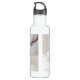 Botella de agua con una adorable foto de un lindo doggy blanco usando un gorra de navidades rojos.