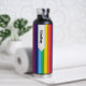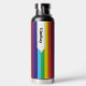 Beba con esta botella de agua de cobre moderna y elegante, suficientemente grande para satisfacer cualquier sed. El diseño tiene un patrón de rayas verticales en rojo, violeta, índigo, turquesa, verde, amarillo y naranja. Hay una pestaña vertical blanca puntiaguda con detalles de color negro sobre la tela que se personaliza con tu nombre en negro. Puede cambiar el tipo de letra y/o el color del tipo de letra. Envíame un correo electrónico a niteowlstudio@gmail.com con su solicitud de cambio de diseño.