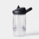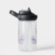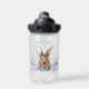 Este conejito marrón elegante lleva elegantes lentes azules y blancos con una corbata de arco a juego. El conejo está rodeado, a ambos lados, de hermosas flores moradas. En la parte superior hay espacio para un nombre. Este diseño está en la parte delantera y trasera.
