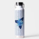 Botella De Agua Personalizado elegante franjas florales monocromát