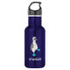 Crea un regalo divertido personalizado para los amantes de las aves. Esta botella de agua tiene un ilustracion al estilo personalizado de un pájaro de pezuña azul y está lista para ser personalizada con un nombre u otro texto con letras blancas.