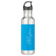Botella De Agua Personalizar nombre vertical, guión blanco, azul c