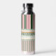 🟢 Bring a sense of calm sophistication to everyday hydration with this personalized patterned water bottle, designed to feel both artistic and practical 🌸. The wraparound artwork blends soft scalloped accents, rhythmic stripes, and classic diamond motifs in a balanced palette of blush, sage, deep green, and black. The result is a design that feels curated, modern, and quietly distinctive.