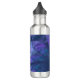 Composición abstracta creada con software de generación fractal y refinada con software de procesamiento de imágenes. Esta obra de arte digital recuerda a una delicada corolla con pétalos transparentes y de color azul. Parece un pastel con tonos dominantes azules y un ligero violeta, sin un fuerte contraste ni un color intenso.
