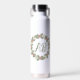 Botella De Agua Pink Rose Wreath Monogram Water Bottle