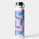Botella De Agua Pink with Blue Brushstroke Pattern