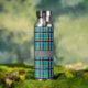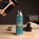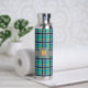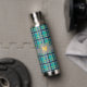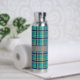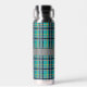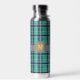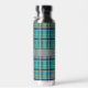 Una rica base turquesa está atravesada por bandas de azul marino profundo, gris sólido y naranja luminoso, que combina colores y contrastes a la moda con un estilo clásico y acogedor. Personalizar el monograma con su inicial para crear una botella de agua que sea única para su uso.