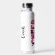 Esta botella personalizada de agua del entrenador de purpurina rosa es perfecta para un entrenador de vítores. Este diseño cuenta con animadores, un arco y una estrella. Se puede encontrar el diseño de animaciones en otros artículos de mi tienda, PageCreativeDesigns.