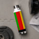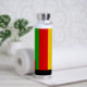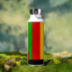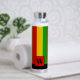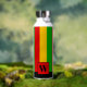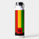 Bright Rasta flag coloured green, yellow and red striped water bottle. It features a monogram square on the front where you can add your own initial