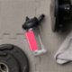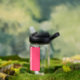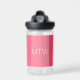 Botella De Agua Rayas rosadas simples Monograma blanco