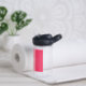 Las franjas verticales son de diferentes tonos rosados. El texto en blanco es para su nombre o monograma.