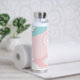 Botella moderna personalizada en tonos pastel rosa y verde azulado.