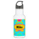 Esta botella de agua tiene un divertido y divertido patrón abstracto de ovarios y círculos en brillantes colores. Esta botella se puede personalizar cambiando el nombre de la parte delantera.