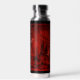 Botella de agua negra y roja de Nueva York con el paisaje urbano y el horizonte de Nueva York. Diseño moderno. Texto personalizado en el frasco de agua. Cambiar el texto o salir tal como está. Use la plantilla para crear su propia botella de agua de perfil de Nueva York.