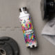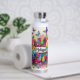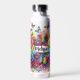 Botella de agua personalizada. rosas y mariposas de color arcoiris purpurina