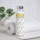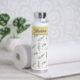 Olive branch botanical green water bottle design featuring a delicate leafy pattern on a soft neutral background with a scalloped border and name detail. Perfect for everyday use, gym, or travel with elegant greenery and minimalist botanical style.