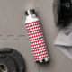 Los colores de las carreras de caballos estilo botella de agua con un patrón clásico de diamantes en rojo y blanco. Este arlequín o patrón de diamante es uno de los tradicionales patrones de seda de jockey o colores de carreras para significar el establo en carreras de caballos. Una gran idea de regalo para cualquier aficionado a las carreras de caballos, jockey, propietario o entrenador, o un divertido accesorio práctico para cualquier día de derby o para una carrera de caballos. Se muestra en rojo y blanco, pero los colores se pueden personalizar en la herramienta de diseño.