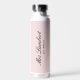 Regalo perfecto para una ducha de novia o boda, esta botella de agua sencilla y elegante es un regalo único y considerado. Con un fondo rosa pálido y el nombre futuro y año de la boda. Regalo ideal para la novia en una ducha de novia o despedida de soltera.
