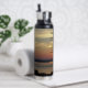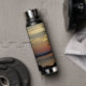 Mantenga su bebida caliente o fría donde quiera que vaya con esta botella de agua a la moda, aislada al vacío, que muestra la imagen de la puesta de sol de un paisaje marino dramático y naranja junto con las palabras inspiradoras de la Oración de la Serenidad. Seleccione su tamaño y estilo de la botella de agua.