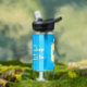 Botella de agua CamelBak Eddy®. Añadir iniciales. Motivacional - siga sonriendo, o cambie el texto por otro lado de la izquierda. Azul cielo y amarillo.