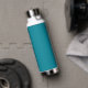 A simple modern blue teacher water bottle with the words, "TEACHER" overlayed by the teachers name. Personalize it with your teachers name for a fun teacher gift. Designed for you by Blackberry Boulevard.