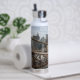 Mantenga sus bebidas frías o calientes donde quiera que vaya con esta botella de agua aislada al vacío, de moda, que cuenta con una imagen fotográfica del horizonte de Lower Manhattan vista desde el puente de Brooklyn. Seleccione el color y el tamaño de su botella de agua.