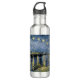 Casas de campo de paja en Cordeville. Vincent Willem van Gogh. Paisaje nocturno en tonos azul oscuro y amarillo. Hay un puente a través del río. En primer plano, un hombre y una mujer caminan por el terraplén. Las estrellas brillan en el cielo. Reproducción de obras famosas de imágenes artísticas de dominio público.